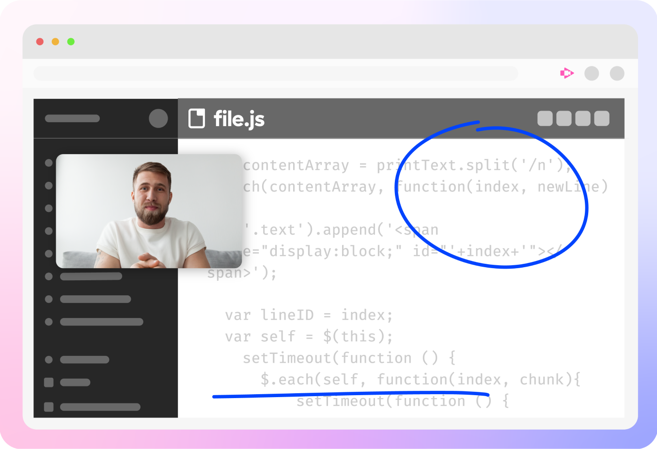 A wall of code can be all that stands between your team and success. The easy way to collaborate, review, and communicate any bugs? Asynchronous video creation. Contextualize your feedback and streamline your team’s process from end-to-end while communicating progress more clearly with other teams. Engineer better communication.
