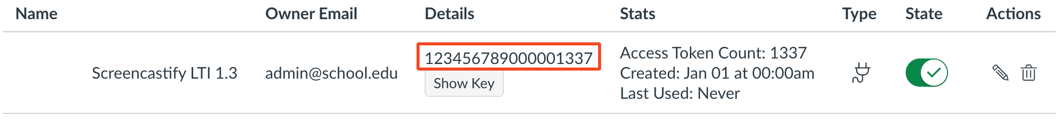 8. Lastly, copy the value under the Details column. This is your Client ID which is needed later to add the Screencastify LTI 1.3 app.