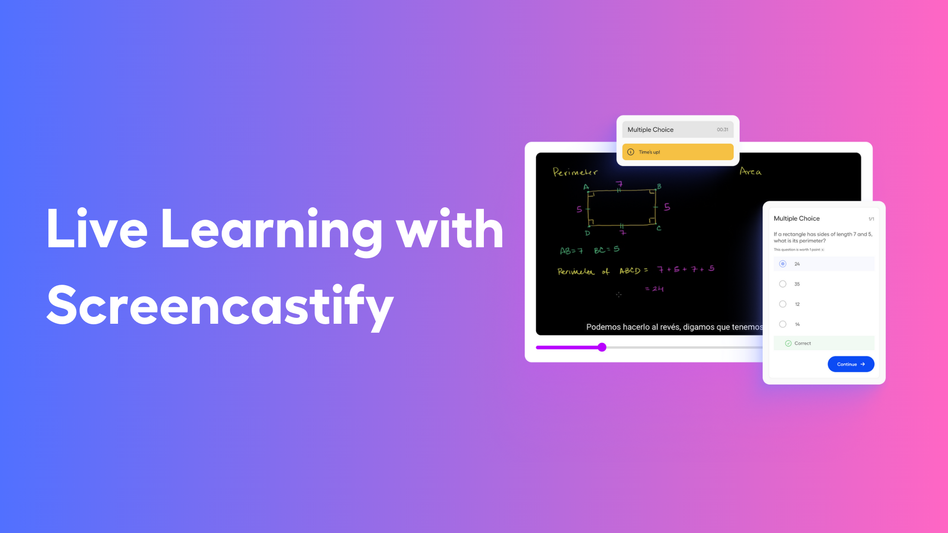 With Live Learning, students don’t just watch a video—they actively participate in a gamified assessment experience. Whether it’s: a video you’ve created, a Premium Library video, or a student-created video from Screencastify Submit—