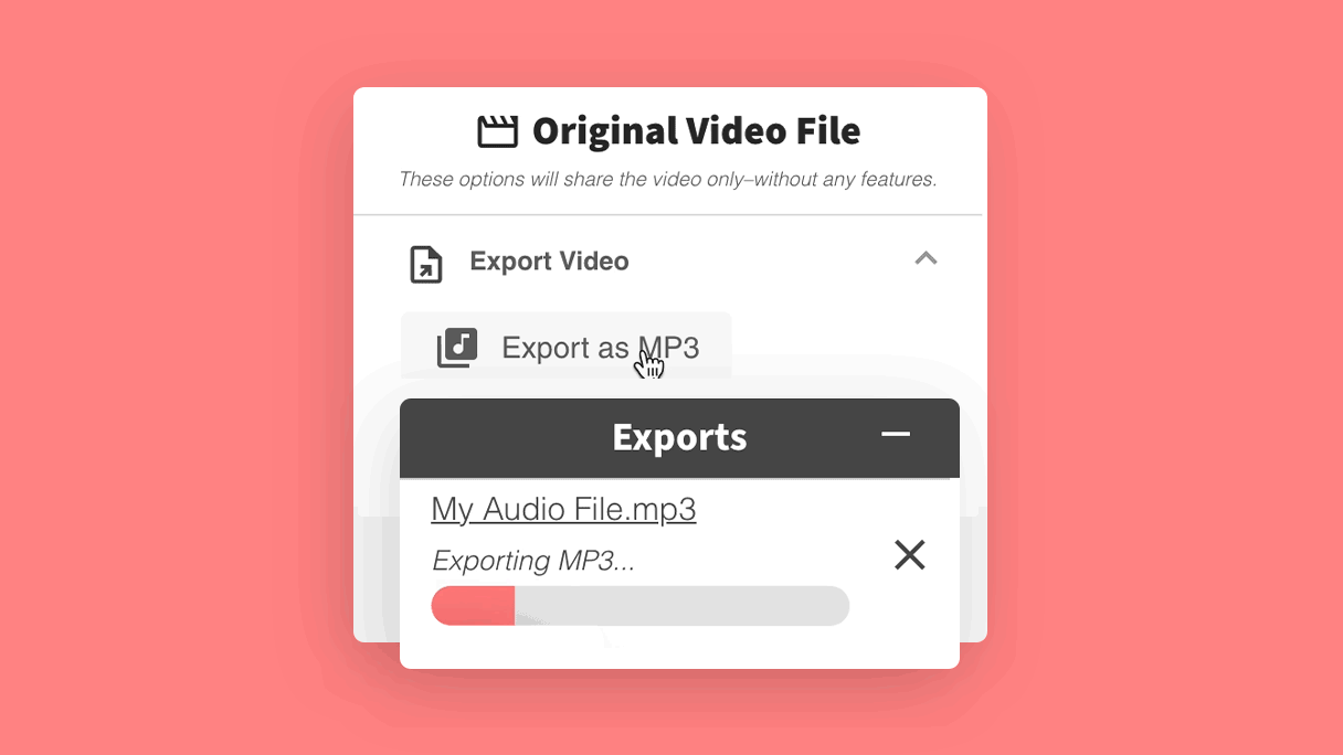 Once you’re happy with the audio, you can download it from the Video Management Page. On the right side panel, where all the sharing magic happens, you can scroll down to Original Video File. From here, you can select Export as MP3.