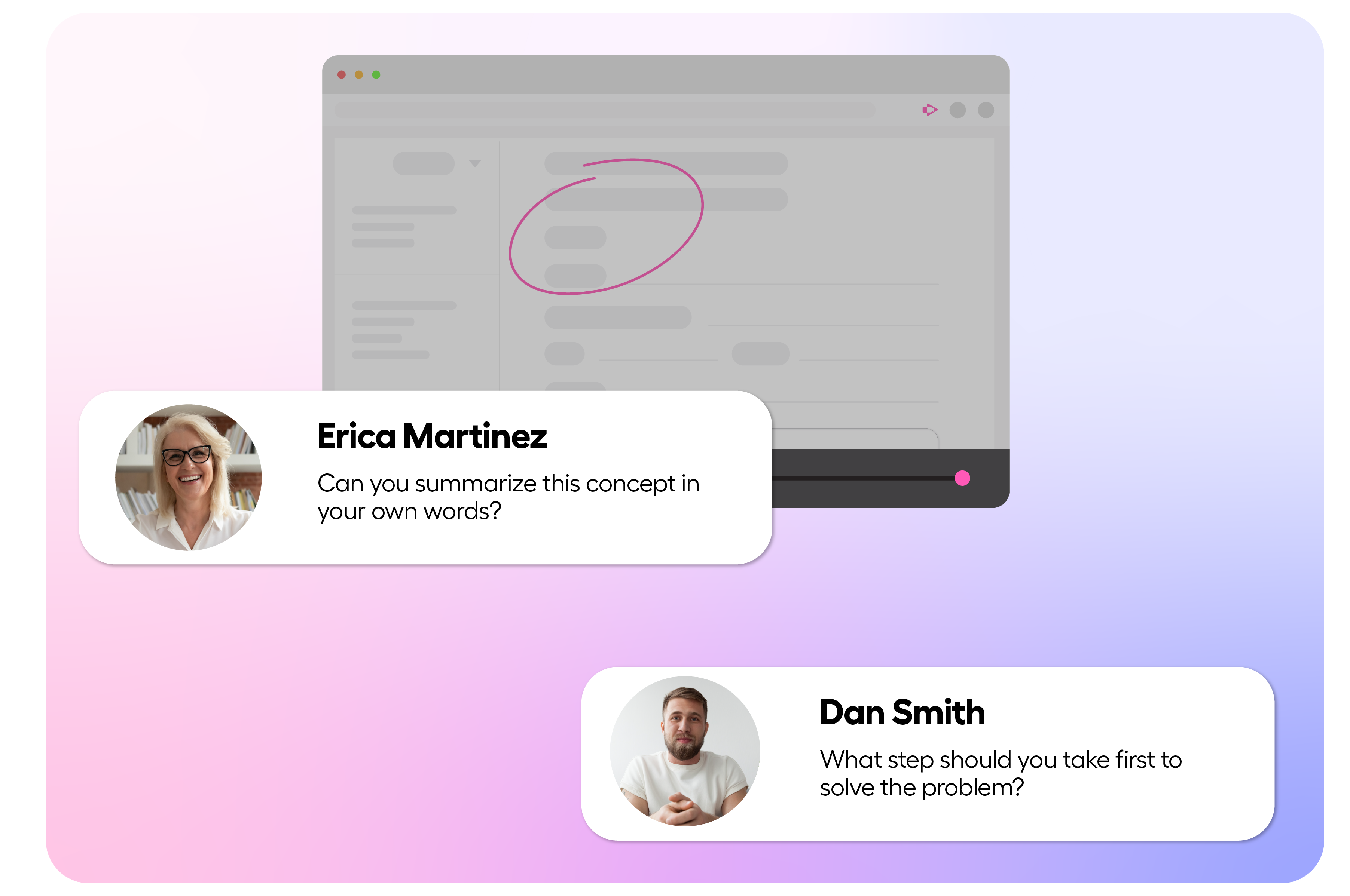 For example, in a video, an instructor might place an interactive question in the video such as, “How does the concept discussed in this video apply to a real-life situation or a problem you've encountered?” This prompt allows students to think critically, and encourages applying the knowledge they’ve learned, all while fostering engagement and enabling students to demonstrate their understanding of the material.