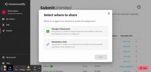 In the beginning of the year, use Screencastify Submit to set up virtual office hours. This will make communicating questions and answers super easy.