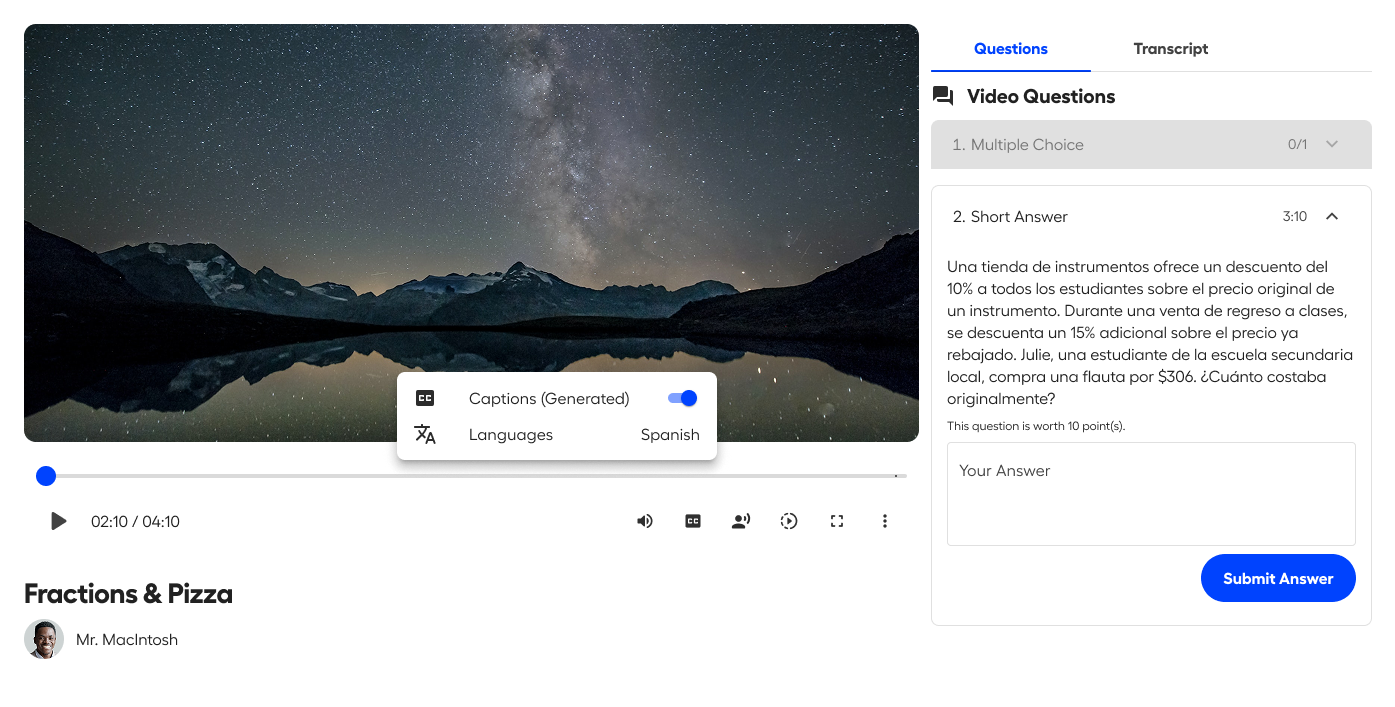 Reaching every student, family, and colleague just got easier. Now, Screencastify’s translation feature extends beyond your videos to include questions. That means learners can not only watch in their preferred language but also engage with assessments in the same language.